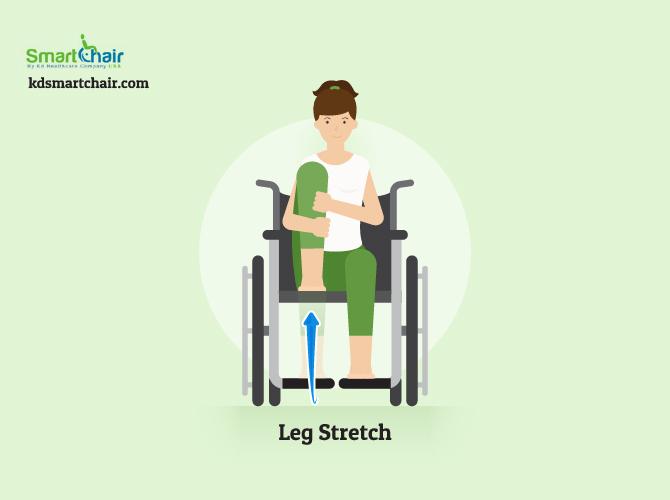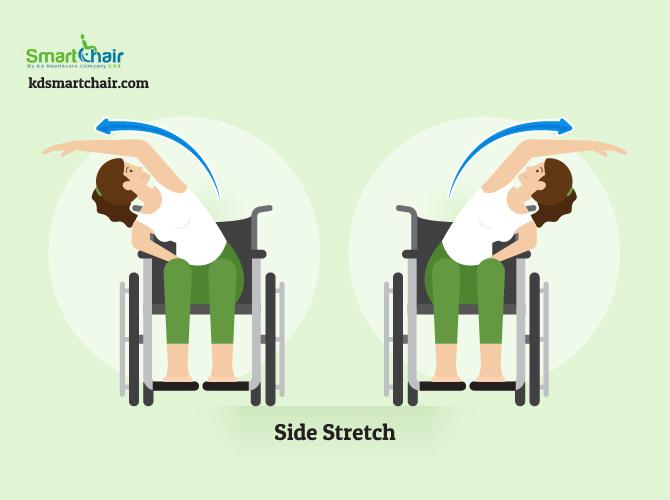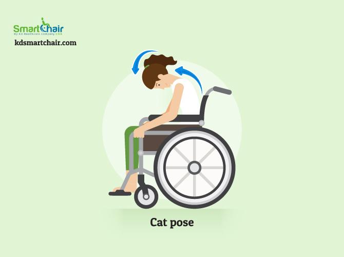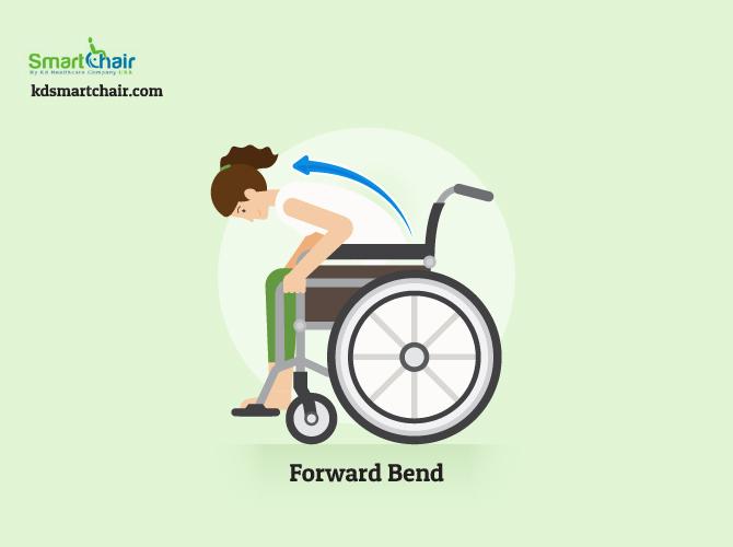 - Exhale as you bend forwards from your waist while placing your hands on your wheelchair for support