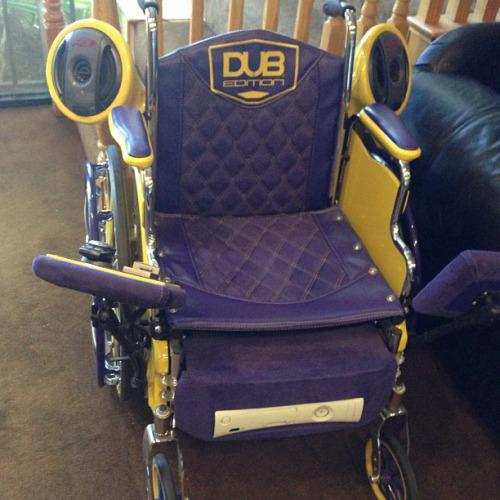 This tricked out wheelchair is made for comfort and luxury. It has rims, comfortable and colorful seating, state-of-the-art speakers and stereo system.