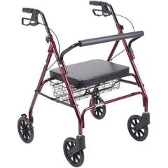 This red walker adds color to your day as you feel confident walking indoors and outdoors. It supports up to 500 pounds and has a soft oversized seat for comfort and a large basket for convenience. It has a steel reinforced frame that supports you and keeps you balanced when walking.