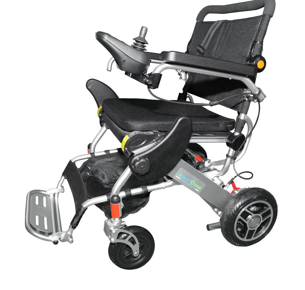Heavy Duty folding power wheelchair from KD Smart Chair is made of a durable lightweight aluminum alloy that supports passengers weight of up to 330 pounds. The chair only weighs 59 pounds which makes it convenient for transport, travel and storage. Our Heavy Duty model also folds and unfolds in second with a push of a button.