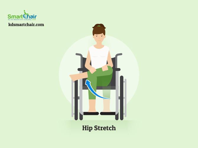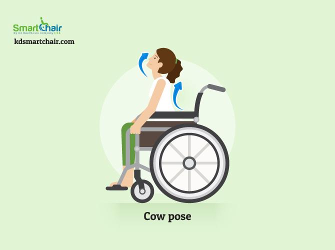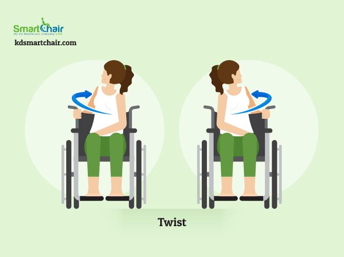 - Exhale as you bend forwards from your waist while placing your hands on your wheelchair for support