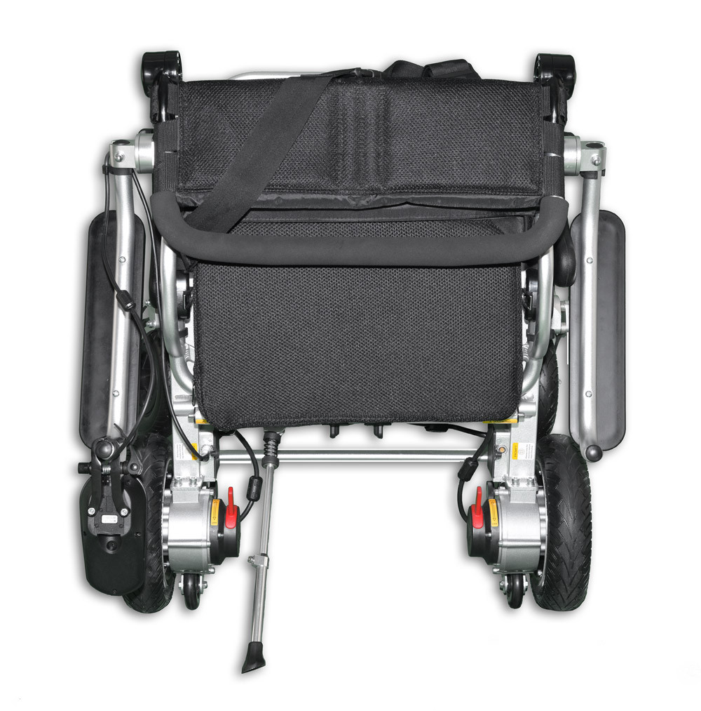 Heavy Duty folding power wheelchair from KD Smart Chair is made of a durable lightweight aluminum alloy that supports passengers weight of up to 330 pounds. The chair only weighs 59 pounds which makes it convenient for transport, travel and storage. Our Heavy Duty model also folds and unfolds in second with a push of a button.